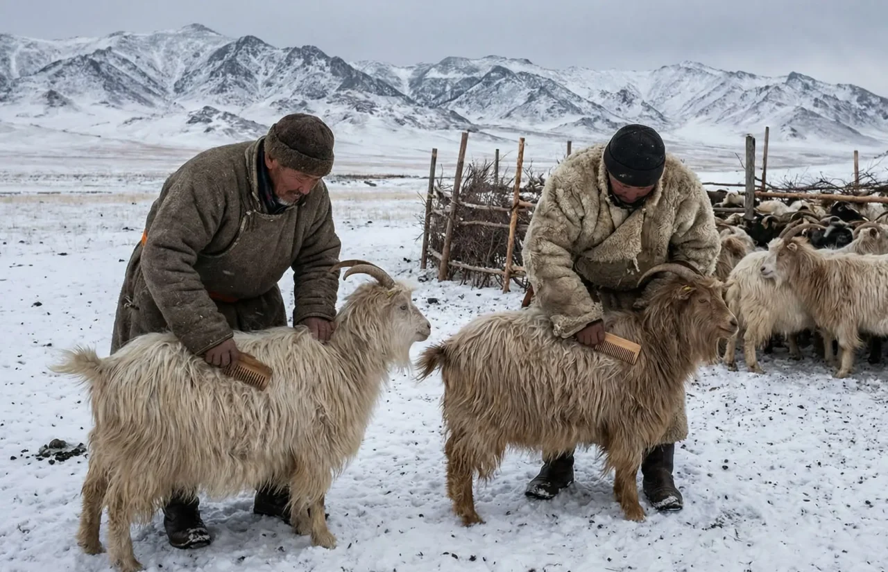 Every Italian cashmere brand depends on Mongolia. The country produces 70% of global cashmere because extreme temperatures force goats to grow dense, fine undercoats. Winter temperatures drop to -40°F, creating ideal conditions for premium fiber production.