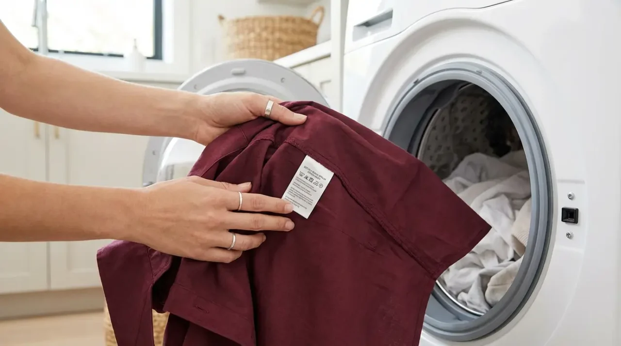 Wash in cold water. Hot water fades burgundy faster than any other color. Cold water keeps the color deep. It also prevents shrinking. Use the gentle cycle if your machine has one.