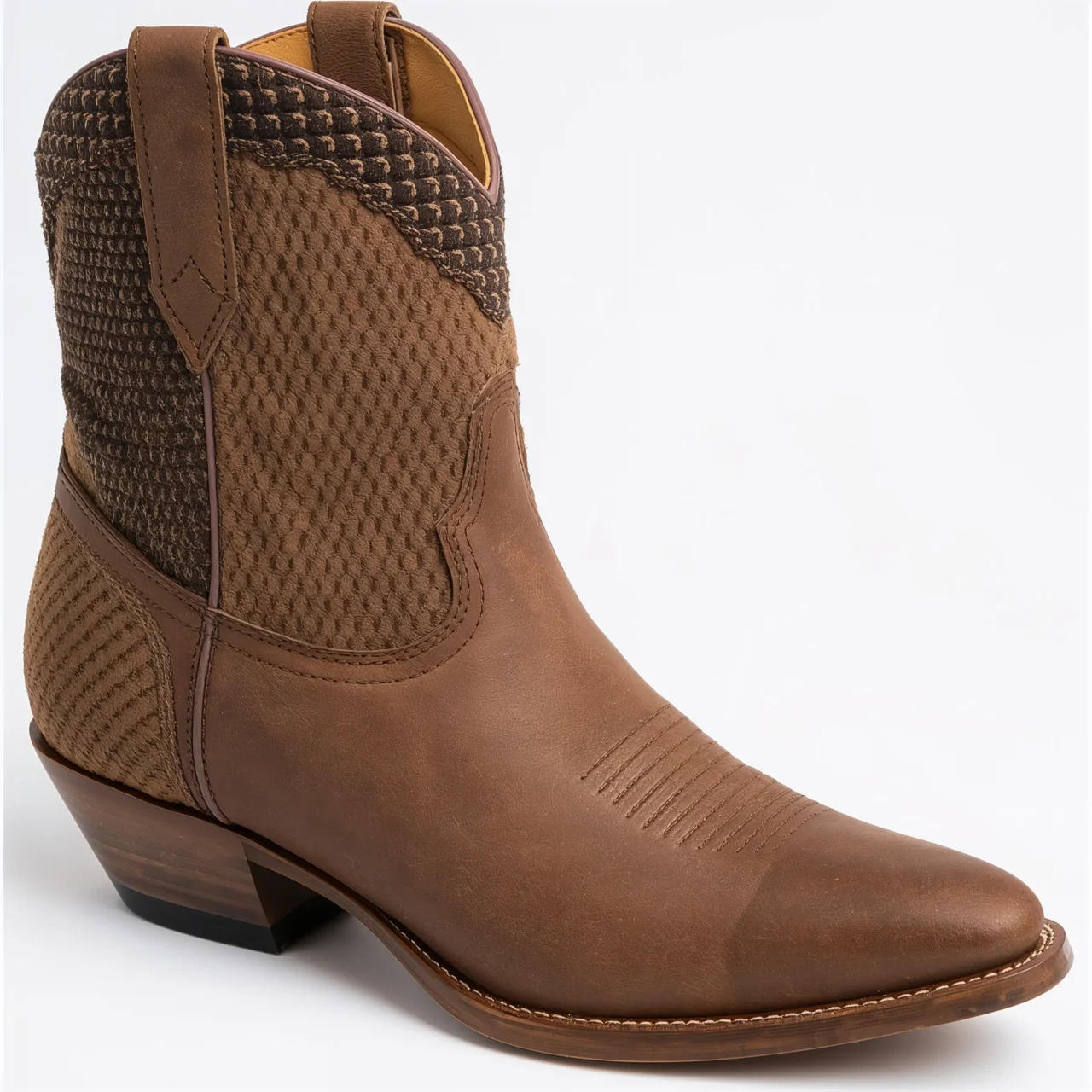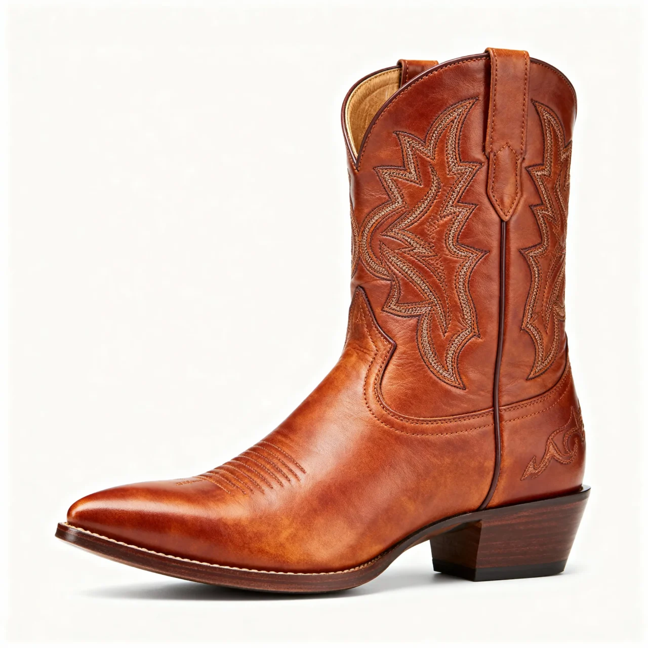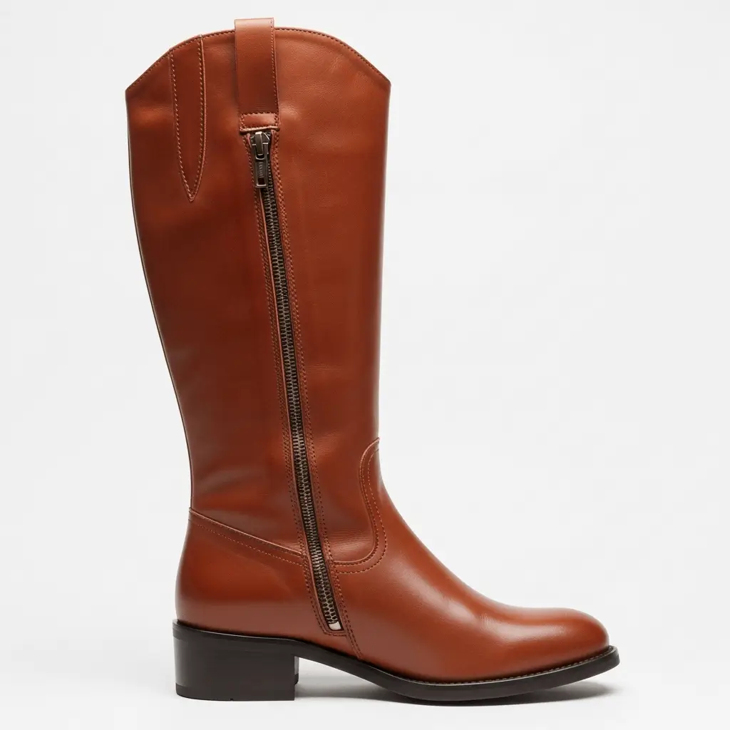 These boots feature a comfortable block heel and a convenient zipper closure, making them incredibly practical for easy on-and-off wear. Their clean lines and warm color make them easy to complement both casual and formal outfits without screaming “Western.”