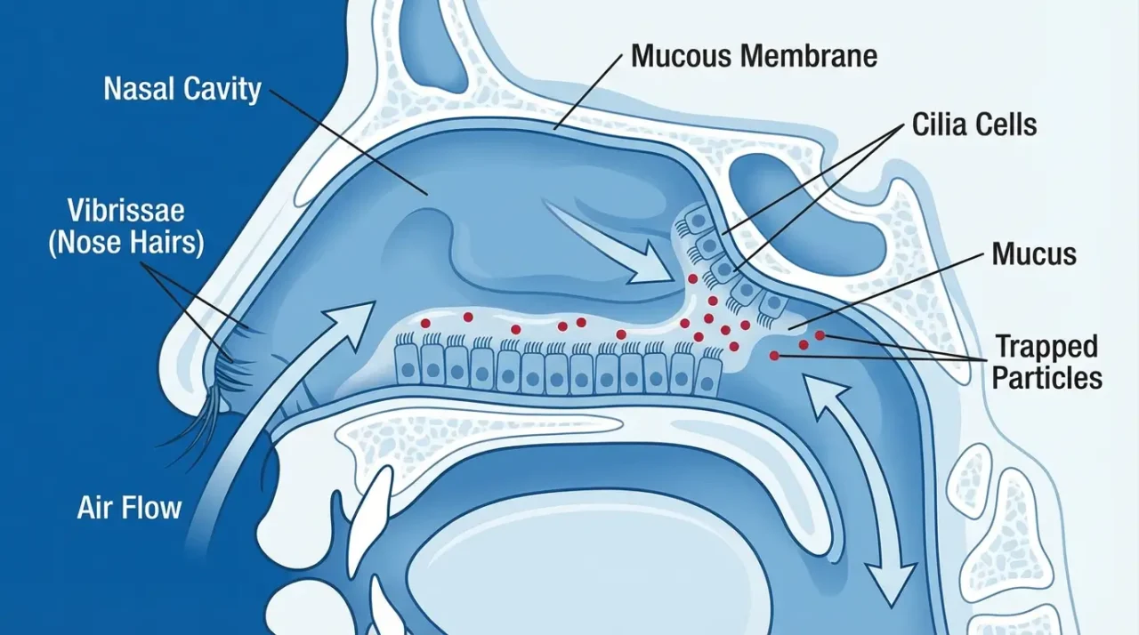 Think of nose hair as a living filter system. Every breath you take pulls in dust, pollen, and allergens. Your nose hair traps these particles before they reach your lungs. A thin layer of mucus coats each hair. When particles enter your nose, they get stuck on this mucus. You either sneeze them out or swallow them. Either way, they don’t reach your lungs.