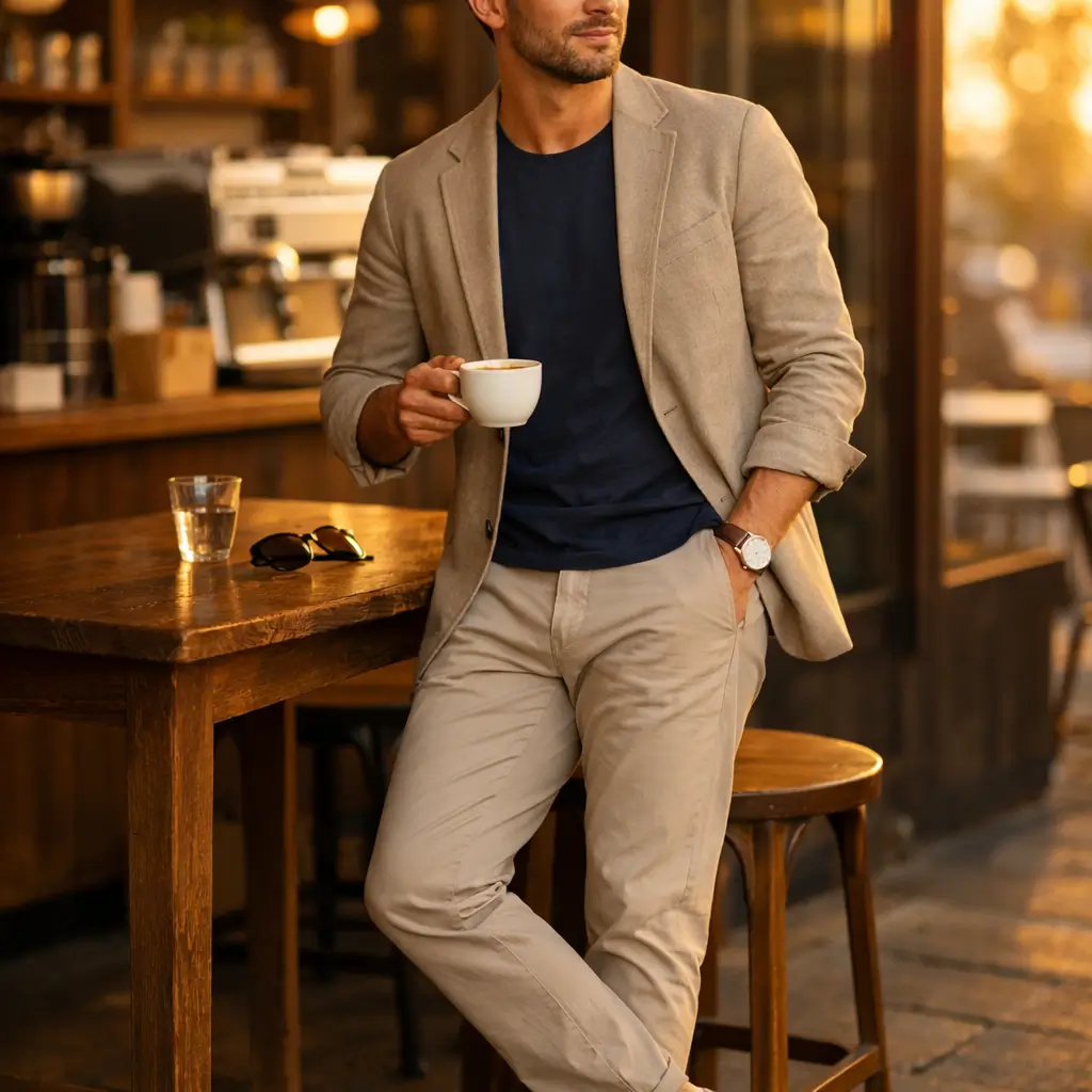 • The well-fitted navy blazer: Unmatched in adaptability, it can elevate chinos or anchor a more refined ensemble. Its structure and fit are paramount.